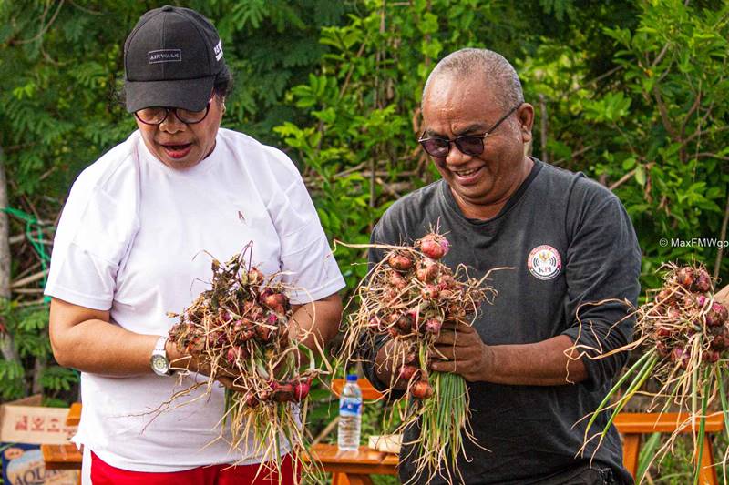 “Hasil panennya bagus, umbi bawang merahnya besar-besar dan menggunakan pupuk serta pestisida organik yang dibuat sendiri oleh petani,” jelas PJS Bupati Sumba Timur Ruth Diana Laiskodat di kebun bawang merah.