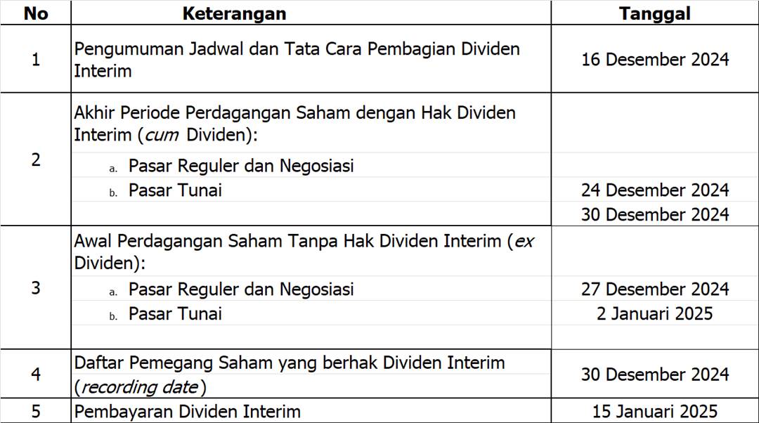 Adapun jadwal dan tata cara pembagian Dividen Interim sebagai berikut: