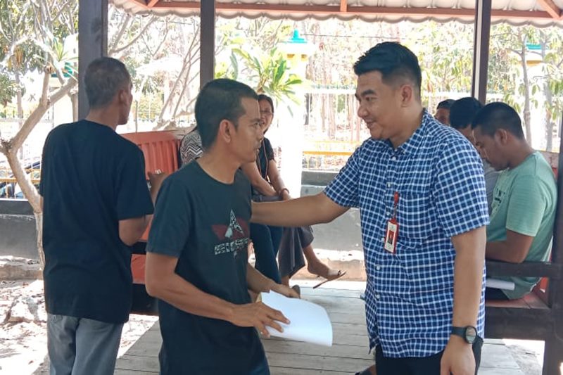 Kasie Pidum Kejari Sumba Timur, Muhammad Ronny menyerahkan surat penyerahan kembali tersangka ke keluarga usai restorative justice nya disetujui Jampidum. (FOTO: ONI)