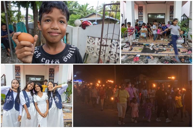 Acara mencari telur paskah menjadi acara puncak dari kegiatan Pawai Obor Anak Sekolah Minggu dan remaja GKS Payeti serta diakhiri dengan makan bersama bubur kacang hijau.