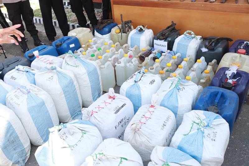 Dalam konferensi pers, AKBP Harimbawa menjelaskan bahwa operasi difokuskan pada penindakan peredaran minuman keras (Miras) ilegal, senjata tajam, dan barang terlarang lainnya.