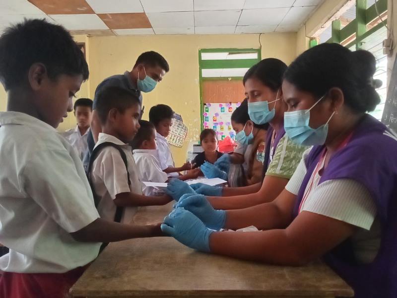 MaxFM Waingapu, SUMBA – 120 Siswa Sekolah Dasar Negeri (SDN) Nari, Desa Kotak Kawau, Kecamatan Kahaungu Eti, Kabupaten Sumba Timur Provinsi Nusa Tenggara Timur, NTT mendapat pemeriksaan malaria secara gratis.