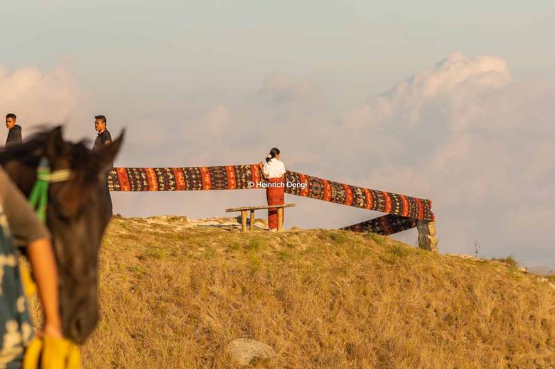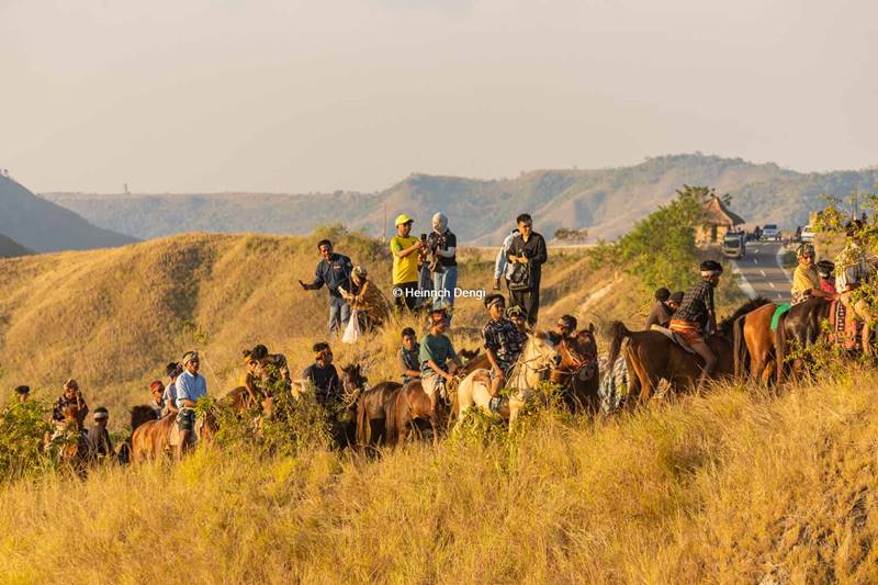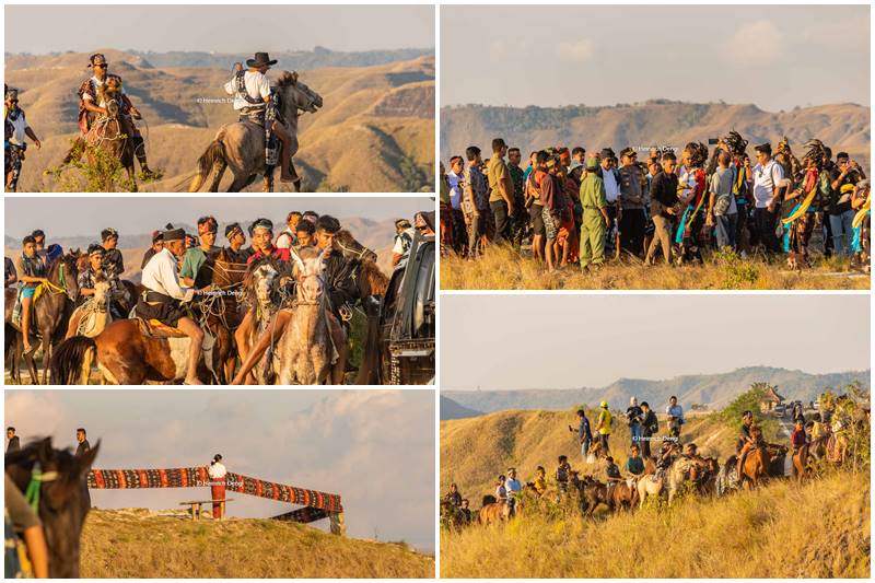 Saat rombongan kuda tiba di dekat bukit, Bupati Sumba Timur Umbu Lili Pekuwali dan Forkompinda beserta Pejabat dari Kementrian Pariwisata RI dan rombongan perlahan meniti jalan di punggung bukit, yang di dahului dua ekor kuda Sandalwod yang menari-nari sambil berjalan dan diikuti teriakan penunggan kuda lainnya di belakang rombongan, dentuman tambur dan gong dan penari menyambut kedatang Rombongan Bupati Sumba Timur.