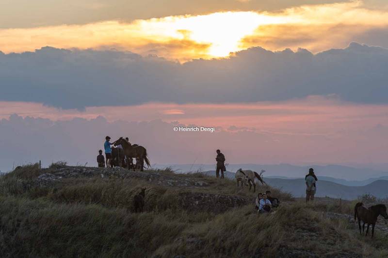 Di atas bukit sisi barat Palindi Piarakuku , terlihat siluet orang berjejer berdiri menatap indahnya sunset, di sisi kiri dan kanan bukit terlihat kuda Sandalwood masih menikmati rumput sore itu di padang sabana Sumba.
