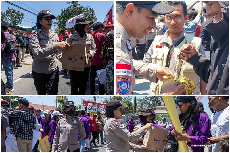 Di Sumba Timur Orasi Dihentikan Saat Adzan, Polisi dan Pendemo Berbagi Makanan dan Buah