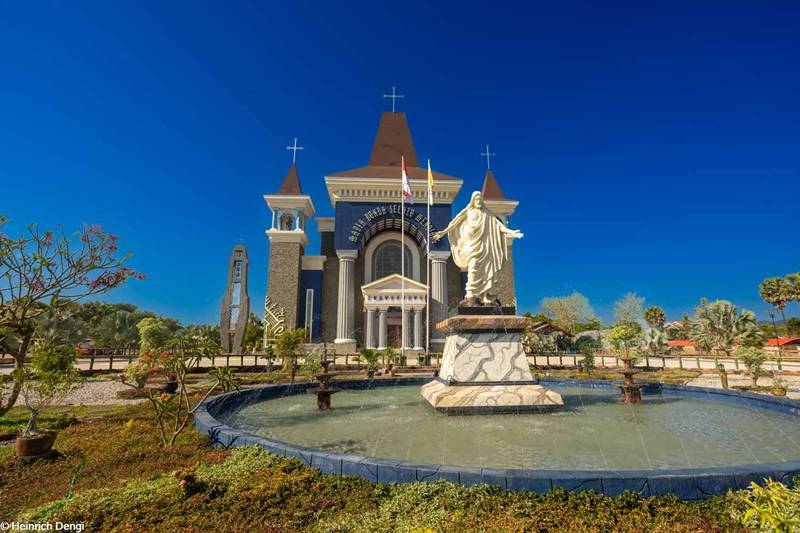 Bangunan gereja ini berdiri megah dengan gaya arsitektur Gotik klasik. Menariknya, desain itu dipadukan dengan sentuhan motif budaya lokal Sumba sehingga menghadirkan identitas khas Nusantara.