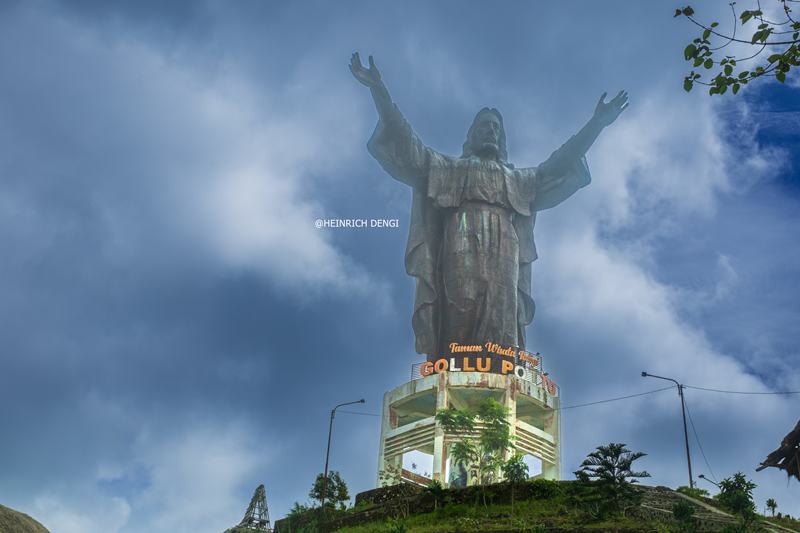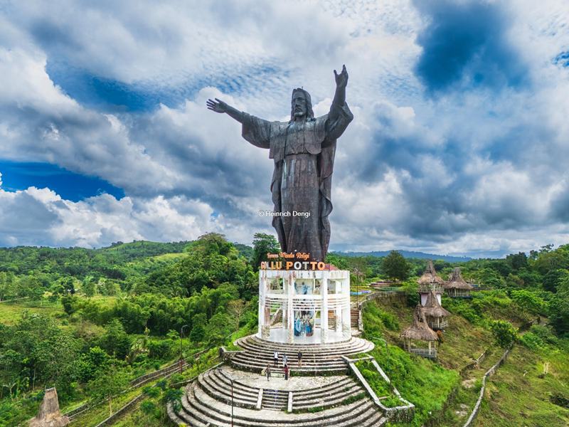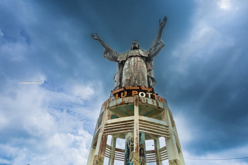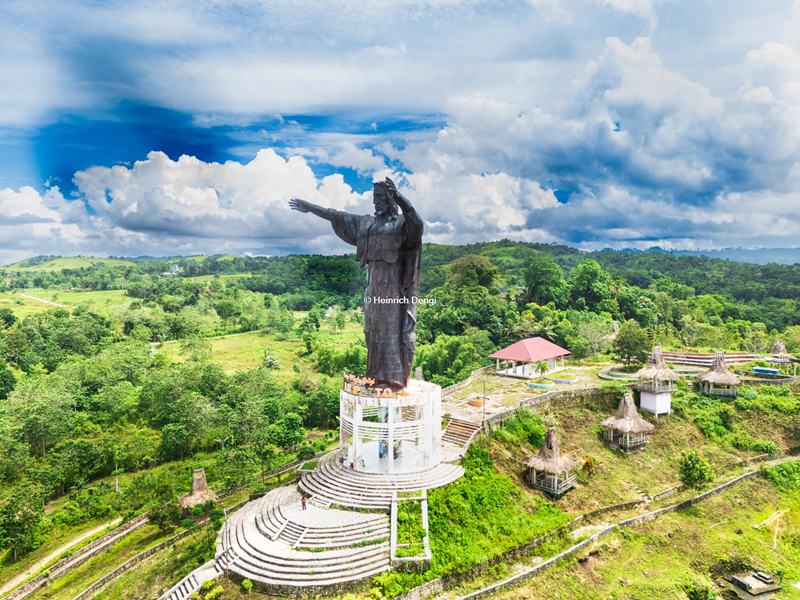 Patung Yesus Dengan Tangan Terentang Memberkati di Kelurahan Soba Wawi, Kecamatan Loli, Kabupaten Sumba Barat, Nusa Tnggarar Timur, NTT, Tinggi Sekitar 40 Meter [Foto: Heinrich Dengi]