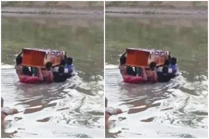 Sebuah video amatir yang viral di media sosial memperlihatkan warga dengan penuh kebersamaan bergotong royong memikul peti jenazah menyeberangi Sungai Kambaniru yang dalam dan berarus kuat, terlihat posisi air sungai di atas dada orang dewasa. Tidak ada jembatan, tidak ada alternatif lain. Hanya keberanian dan rasa kekeluargaan yang mendorong keluarga baw apulang jenasah.
